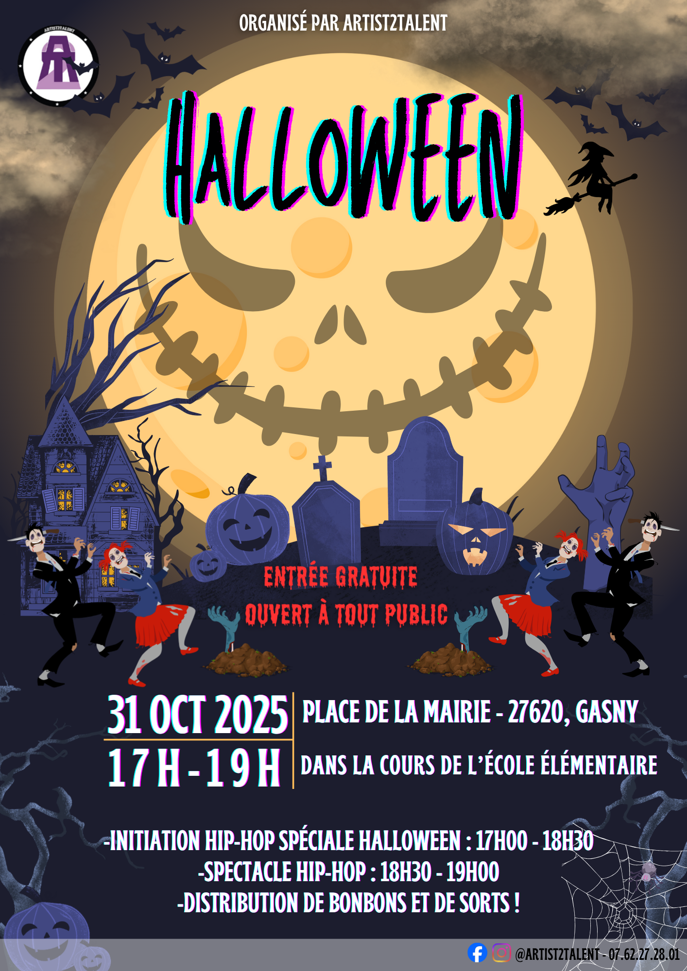 17h00 à 18h30, initiation HIP-HOP avec une chorégraphie sur le thème d'HALLOWEEN